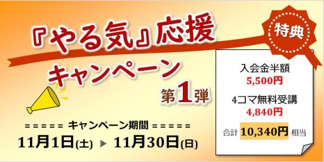 ☆追加1コマ(1講座50分)が1210円☆